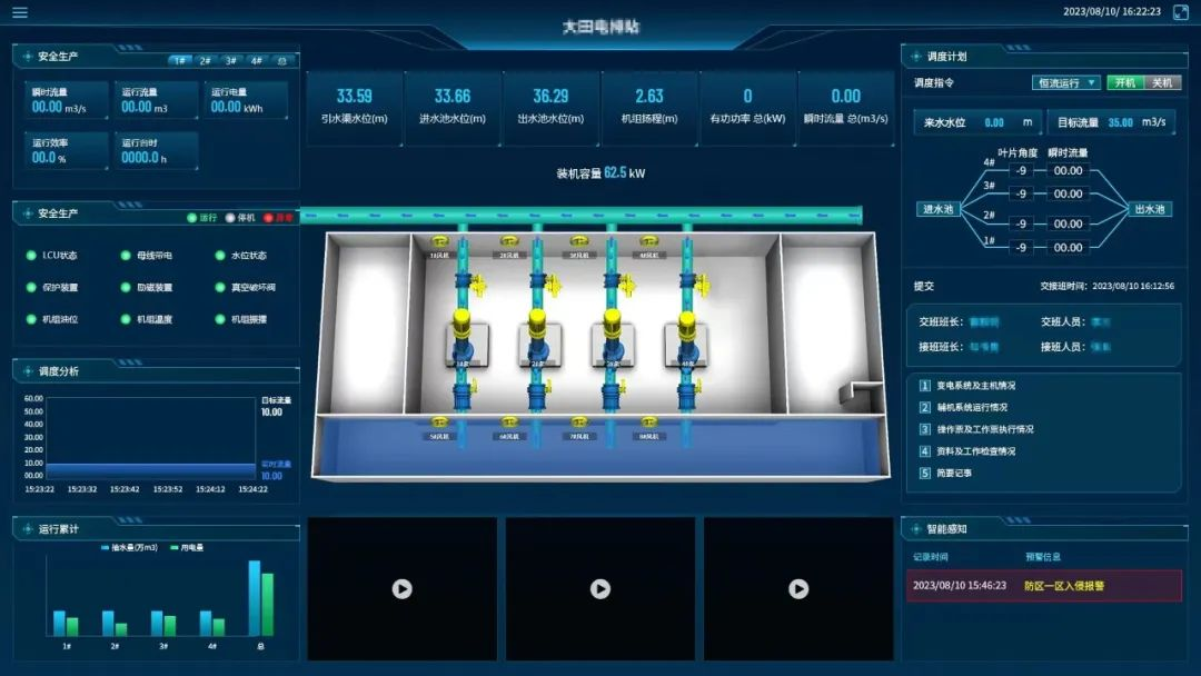 为有效降低汛期时洪水漫灌和洪涝灾害对生产、生活的影响,公司HZInfo3000闸泵集群智能管控系统可通过流域地形、气象、水文等数据,结合流域枢纽调度预案及监测数据对流域来水态势进行预报和预警,以流域泵站闸群的调度方案为核心,利用一二维水动力、水量平衡等数理模型对来水和枢纽调度进行预演,形成预案。