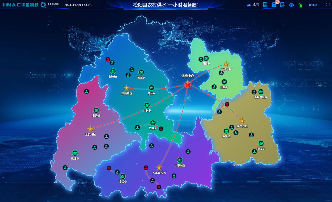 HZI-RW农村供水数字化综合管理平台应用于松阳县智慧农饮水项目,该平台不仅加速了松阳县单村水站的改造提升进程,实现对单村水站地理位置、进水流量、每日供水、水质状况及运维信息等关键数据的清晰展示,完善了供水保障体系,提升了饮水安全水平;同时,通过数字驾驶舱、供水全景图、运行管控、专业知识库等功能模块,围绕县域内农村单村水站展开综合管理、厂站孪生及矩阵管理的全面建设,构建了集实时监控、预警预测、日常巡查、维修养护、应急预案处理于一体的松阳县智慧农饮水管控平台全链条功能体系,为全面提升农村饮水安全的服务能力和运营水平提供强有力的支撑。