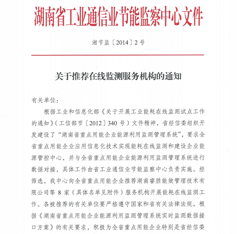 2014年,开云手机平台_开云(中国)科技被湖南省工信厅和省节能监察中心认定为“湖南省能耗在线监测服务机构”,自主研发的“智慧能源管理系统”具备为重点用能企业提供能耗实时监测与优化分析服务能力。系统广泛应用于多个高能耗行业,有效帮助客户提升能效、降低成本,是企业数字化绿色转型重要工具之一。
