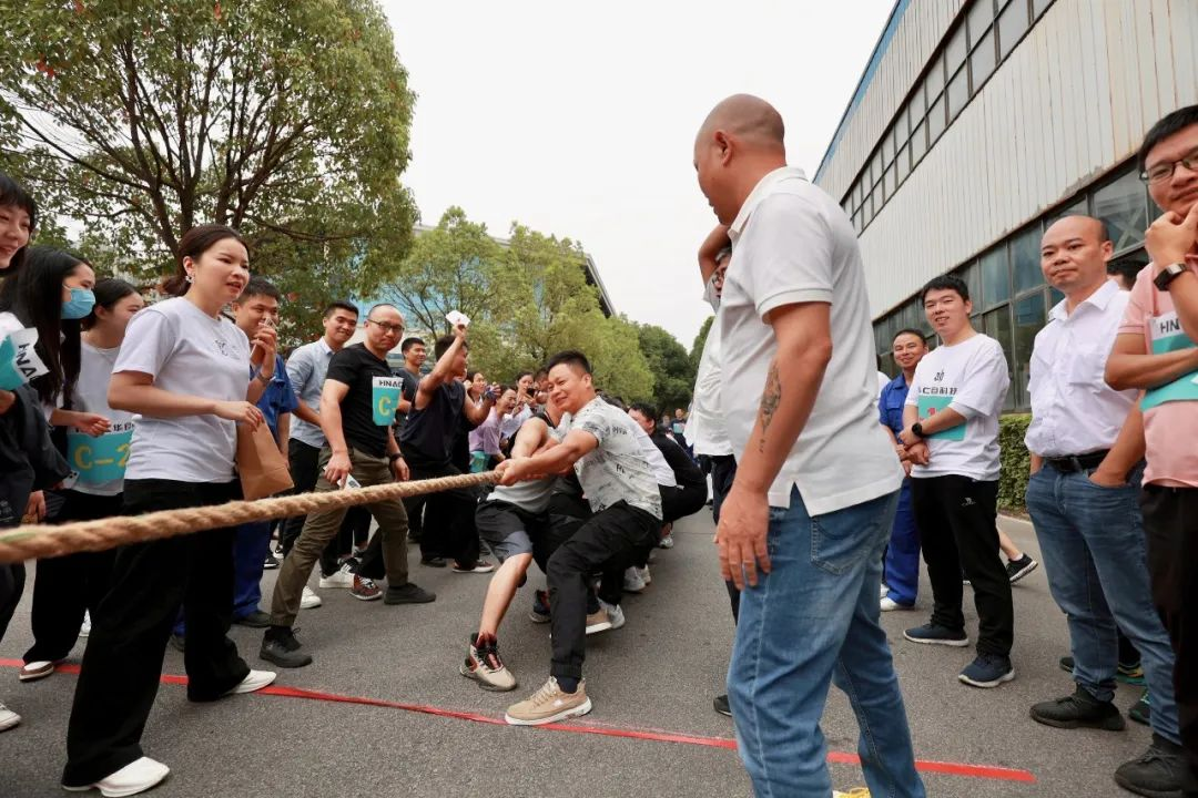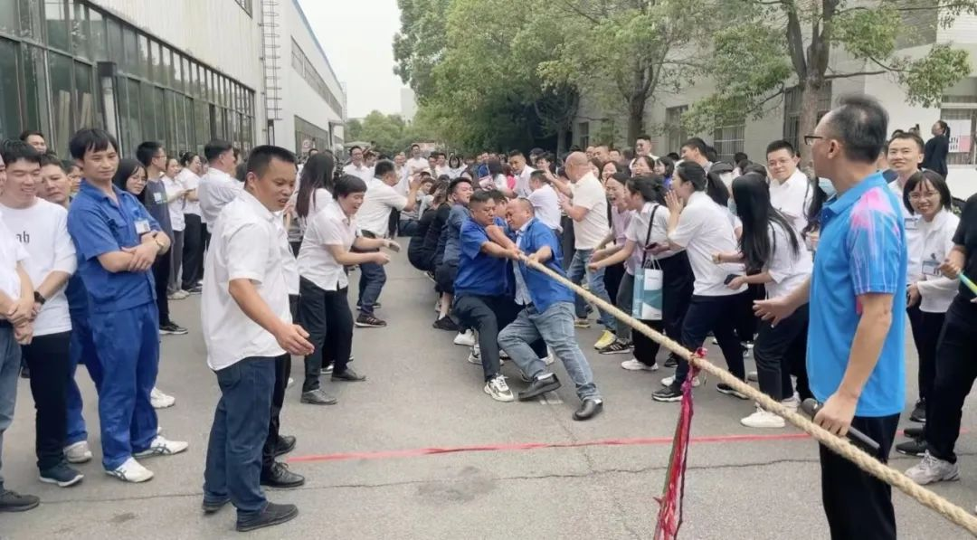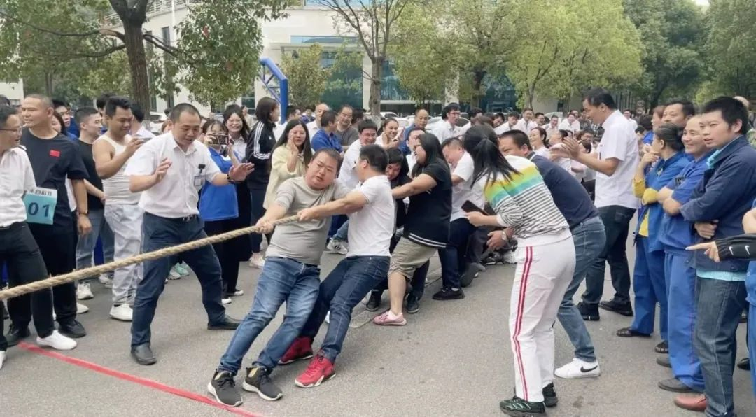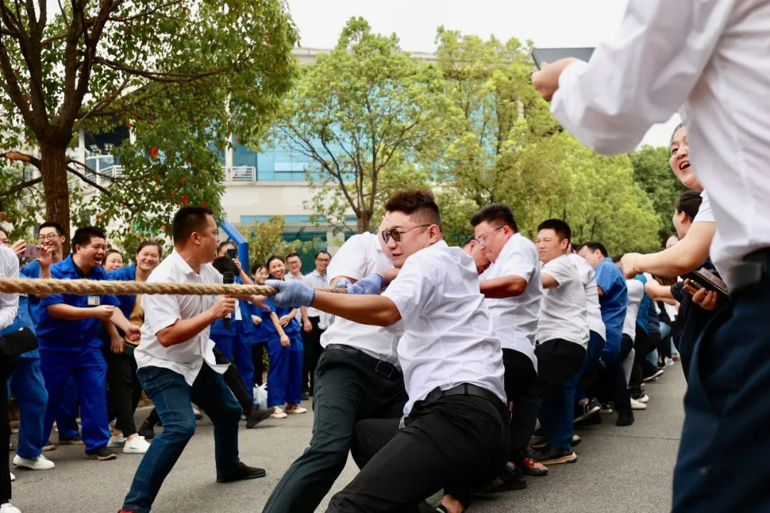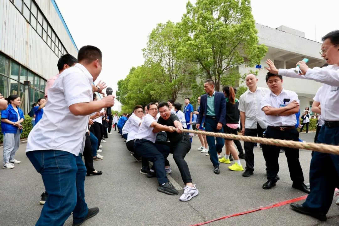 拔河赛场上,各组队员摩拳擦掌,士气高昂。随着裁判一声哨响,队员们带着必胜的信念,在整齐划一的口号下铆足干劲,全力以赴。一根绳,一条心,力量在此迸发,友情在此升华。现场加油声、呐喊声此起彼伏,也汇聚成一股无形的力量,为参赛选手们助威、打气。