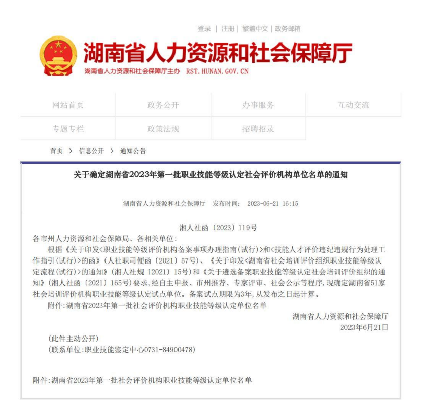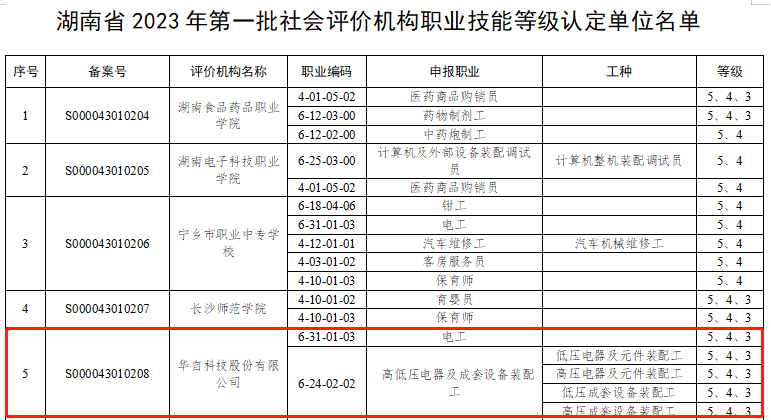 近日,湖南省人力资源和社会保障厅印发《关于确定湖南省2023年第一批职业技能等级认定社会评价机构单位名单的通知》,开云手机平台_开云(中国)等51家单位经专家评审确定具备职业技能等级认定社会评价资格。公司职业技能工作再上新台阶,可面向社会开展指定职业(工种)职业技能等级认定工作。