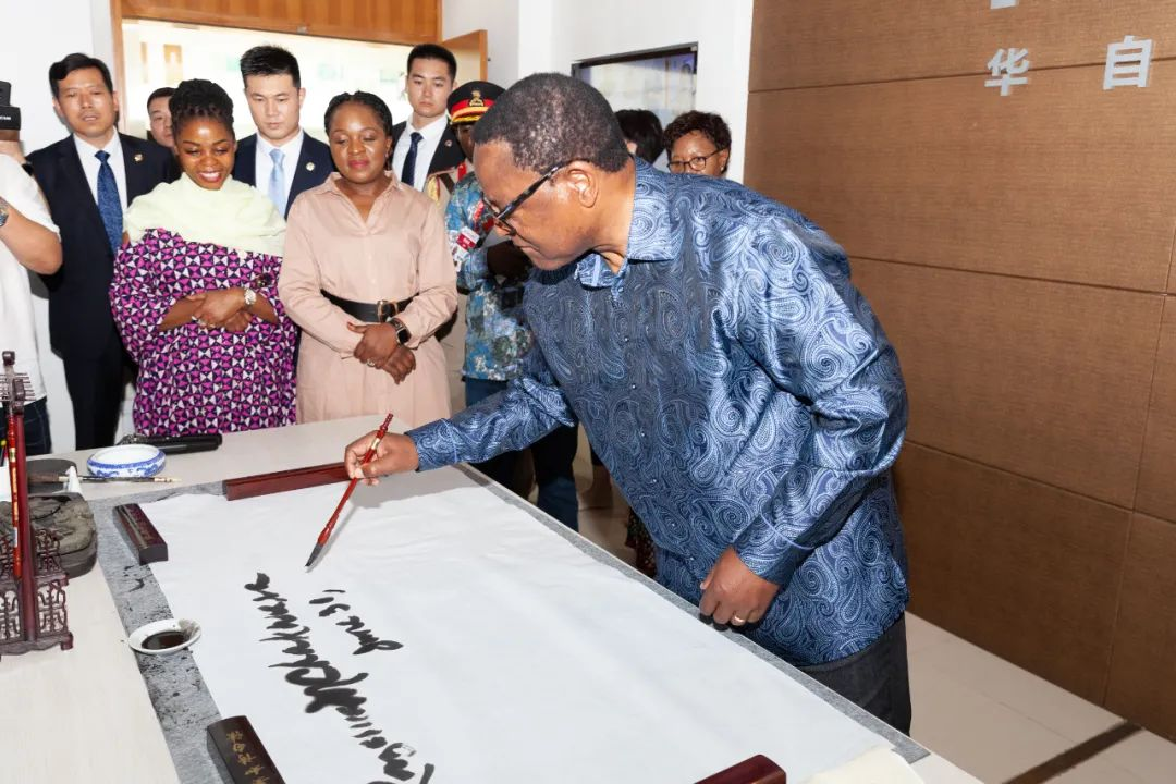 参观结束前,查克维拉总统祝贺开云手机平台_开云(中国)集团成立三十周年,并饶有兴致地使用中国传统文房四宝书写自己的签名以作留念。