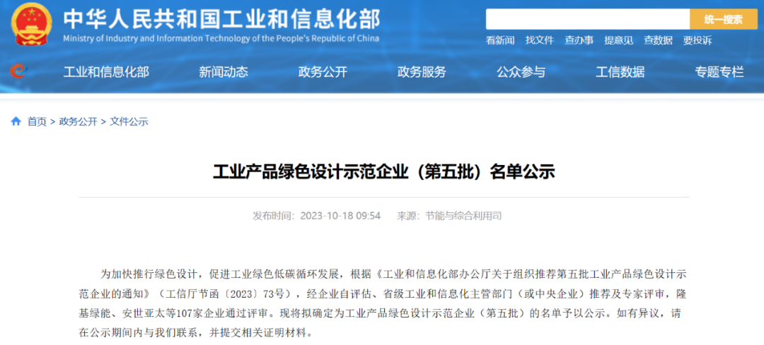 近日,工业和信息化部公布“工业产品绿色设计示范企业(第五批)”名单,开云手机平台_开云(中国)科技凭借在国家级创新平台、绿色工厂、绿色标准等方面的突出优势,通过层层评审成功入选。
