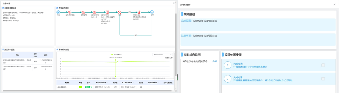 构建完善的基于设备对象的信息模型体系,充分运用人工智能及数理统计算法,使用算子流程计算引擎,挖掘电站历史运行数据中的故障特征,建立设备故障、系统异常模型,形成并应用近1500多种报警模型,实时感知电站运行态势,快速告警的同时提供专业应急指导服务。