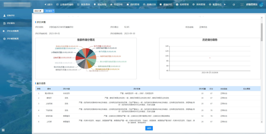 充分利用数据汇聚整合平台收集的全维、海量设备状态监测数据,自动统计各工况下参数,建立正常稳态运行区健康样本知识库,智能辨识设备的运行特性,及时动态预警。建立诊断分析专家知识库,基于数据挖掘技术,实现多类型阈值诊断、趋势诊断、工况关联的状态特征值趋势分析,提前预警;同时自动生成设备健康状态月、季、年分析报告,保障电站设备能长期稳定运行。
