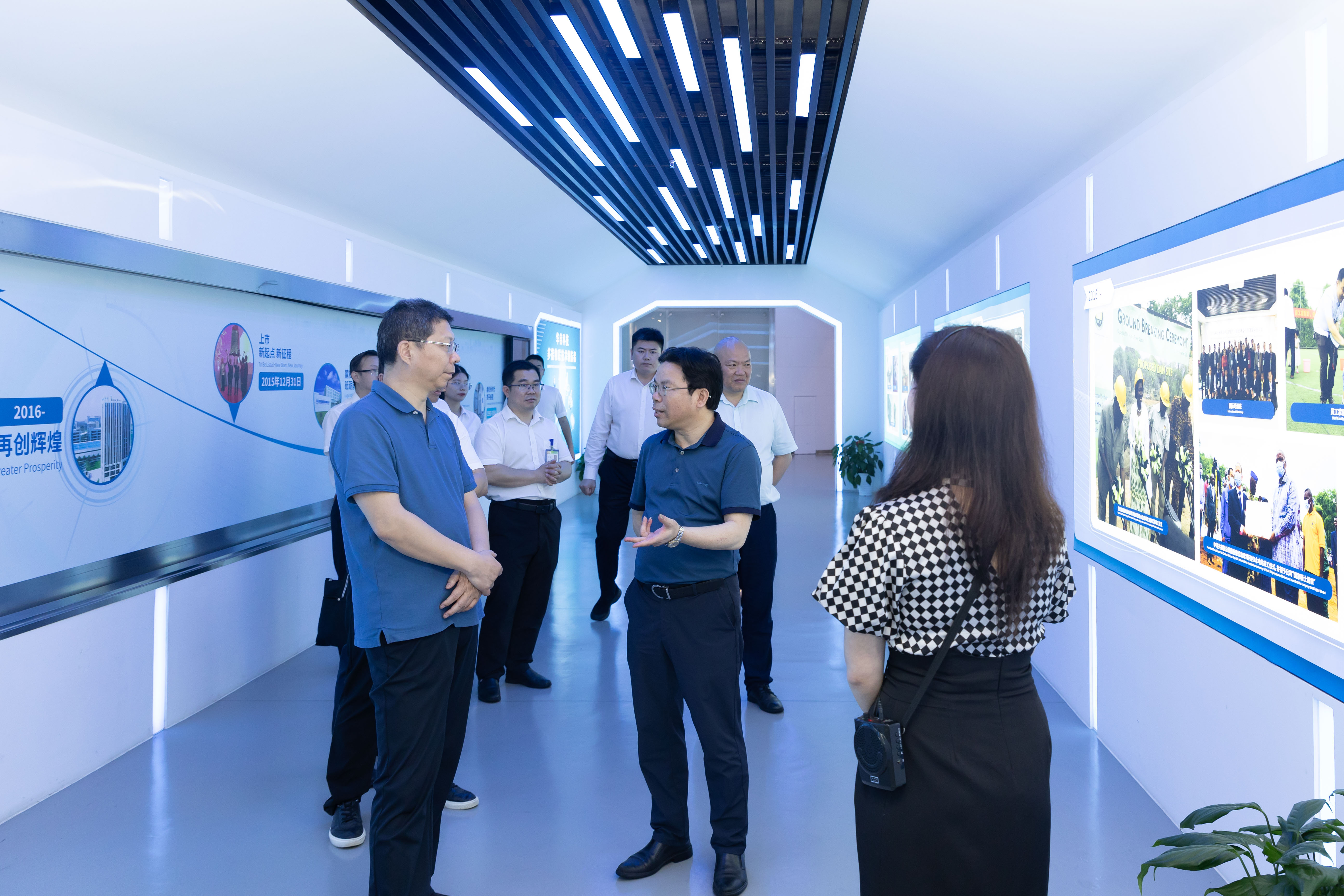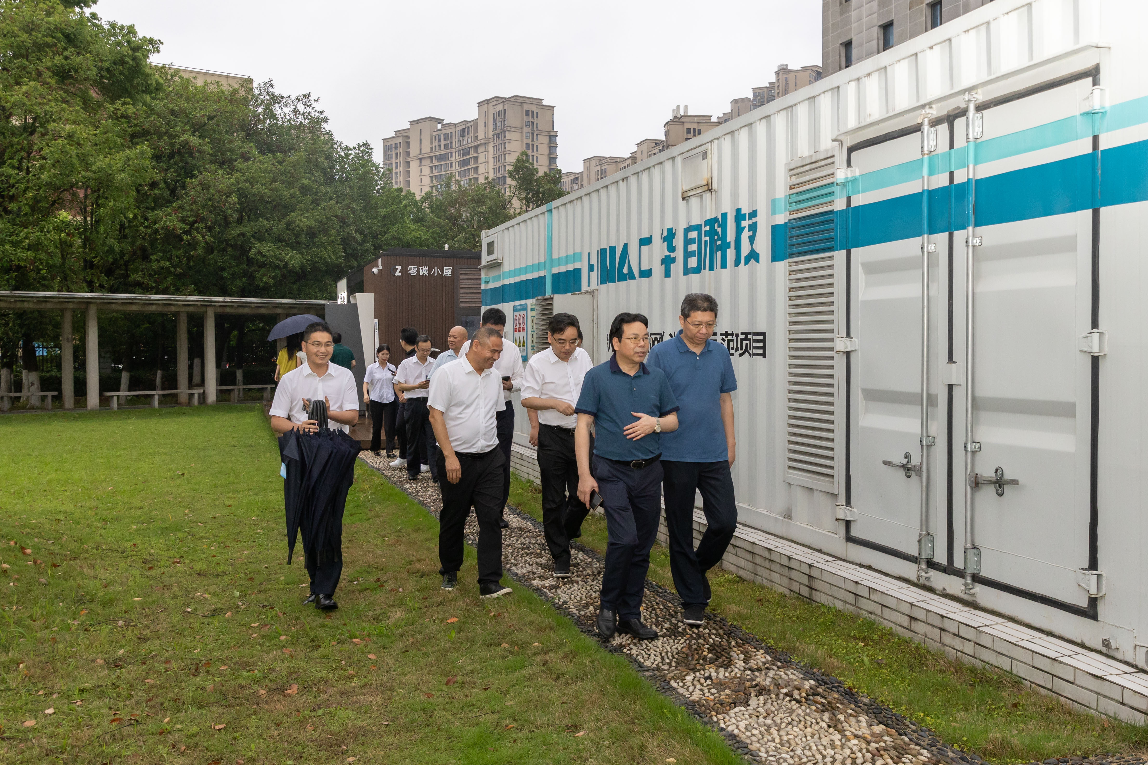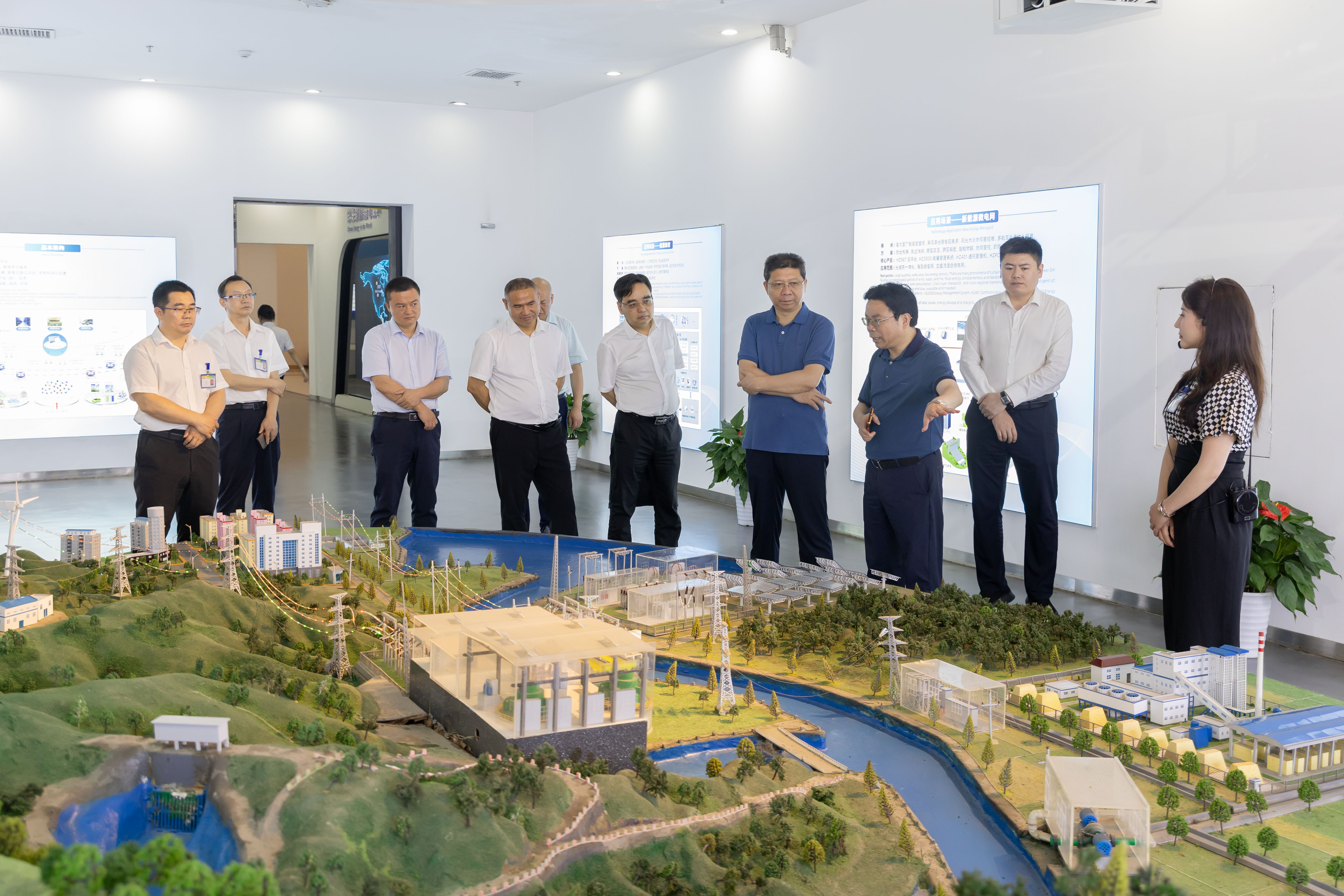 在佘总的陪同下,周总一行先后参观了公司多功能展厅、新能源微电网示范站、零碳小屋等,深入了解公司发展历程、业务布局和发展规划,对公司在新能源领域的技术创新和取得的成效表示高度赞赏。