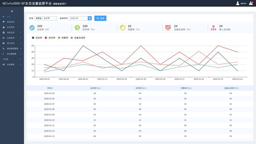 统计分析:包括生态流量过程线,流量报表、电量报表等。