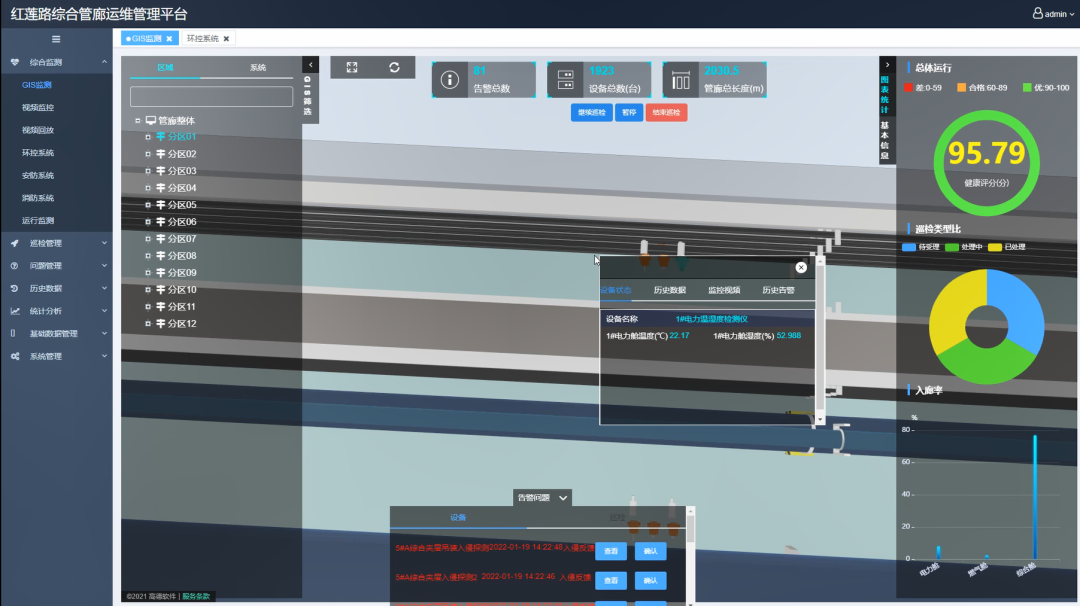 开云手机平台_开云(中国)科技研发的HZInfo3000_UT综合管廊监控管理平台完美破解综合管廊管理的压力与难题,该平台充分利用云计算、物联网、GIS+BIM、大数据等高新技术,集环境设备监控、安防监控系统、通信系统、消防监控系统、巡检管理、设备管理、出入廊管理系统为一体,实现对管廊的集中管理和统一控制,保障管廊安全、高效、规范运行。