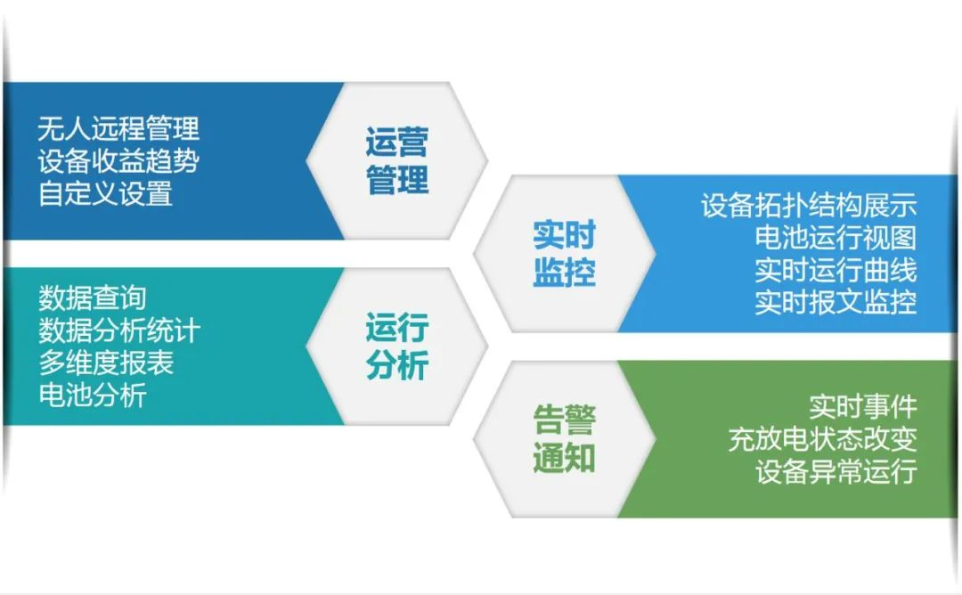 · 实现电池性能大数据分析、运营精细化管理、远程监控、无人值守、智慧运维等功能;