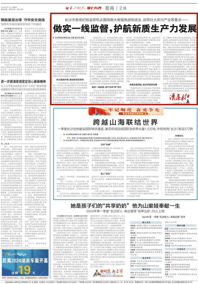 春潮涌动,向新而行。长沙市各级纪检监察机关迅速落实习近平总书记考察湖南重要讲话和指示精神,把服务保障发展新质生产力作为重中之重,围绕做大做强先进制造业、培育壮大新兴产业等重点,跟进监督、精准监督,助推全市经济发展跑出“加速度”。