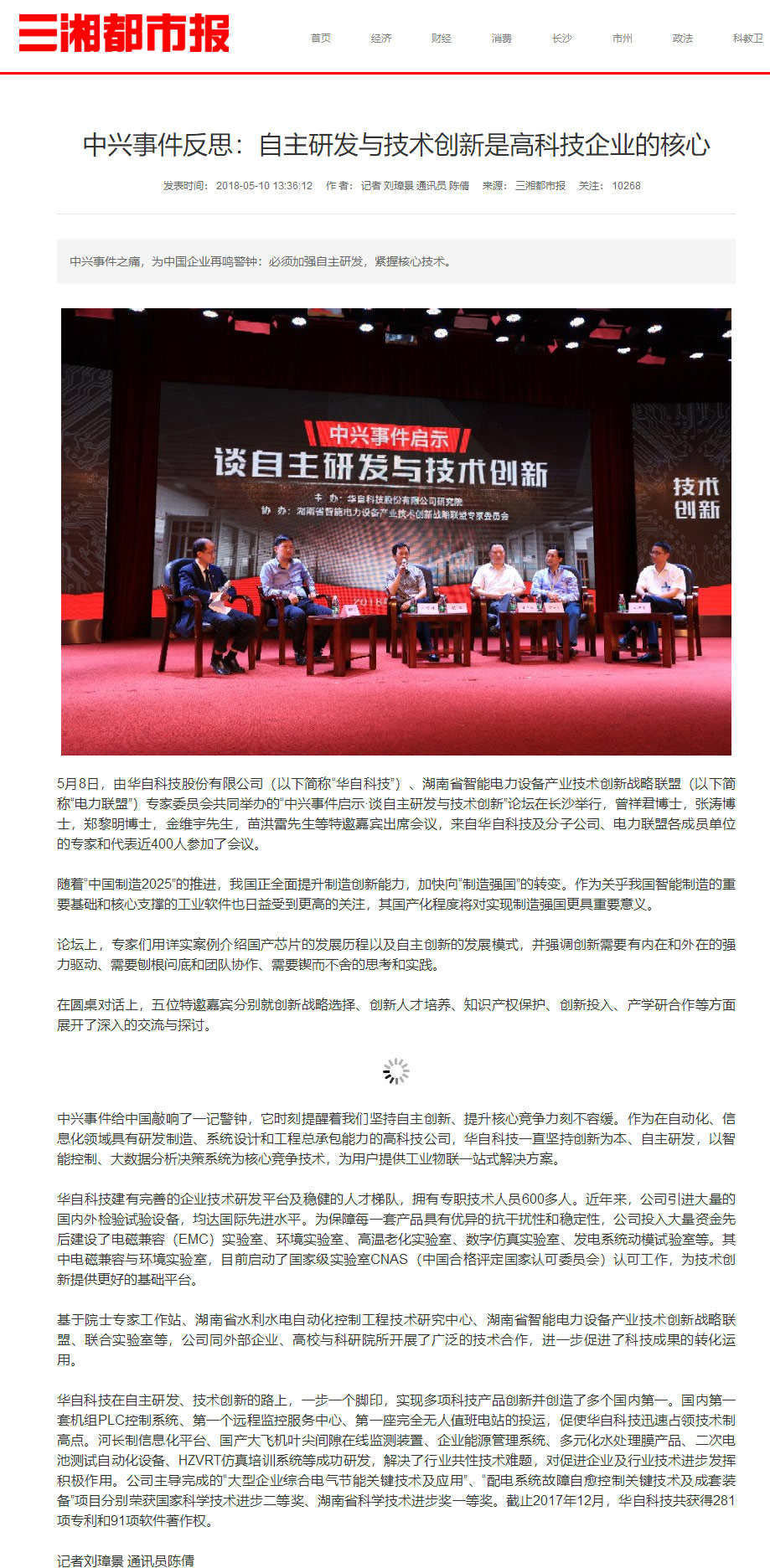 5月8日,由开云手机平台_开云(中国)(以下简称“开云手机平台_开云(中国)科技”)、湖南省智能电力设备产业技术创新战略联盟(以下简称“电力联盟”)专家委员会共同举办的“中兴事件启示·谈自主研发与技术创新”论坛在长沙举行,曾祥君博士,张涛博士,郑黎明博士,金维宇先生,苗洪雷先生等特邀嘉宾出席会议,来自开云手机平台_开云(中国)科技及分子公司、电力联盟各成员单位的专家和代表近400人参加了会议。