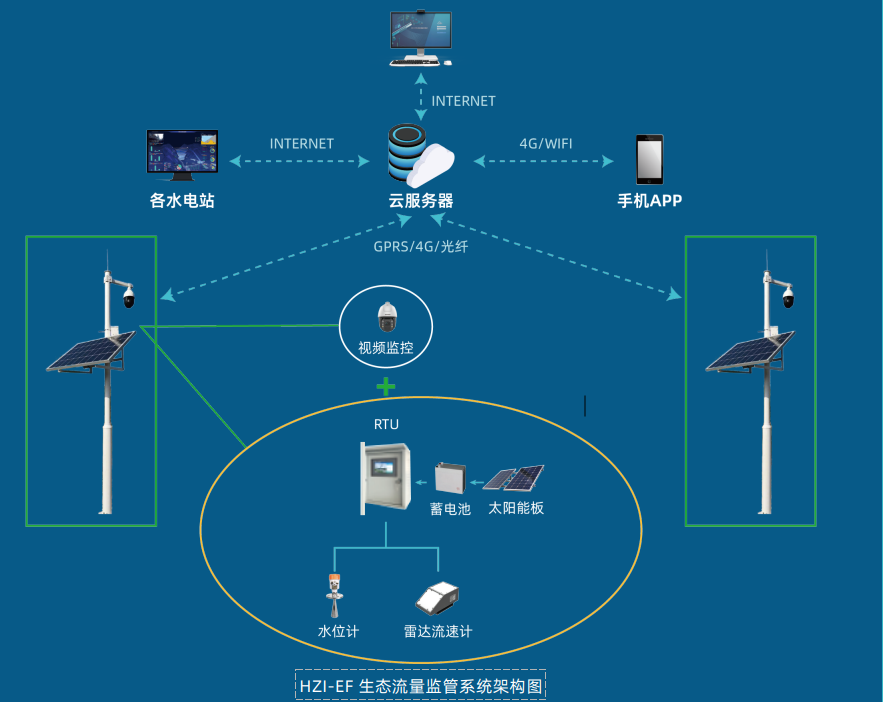 生态流量监管系统是重要的长效监督与管理手段。它基于传感器、物联网、计算机监控等技术,实时采集、传输和监控生态下泄流量数据、图片、视频等关键信息,自动统计分析下泄生态流量变化情况,实现问题发现、预警、跟踪、处置全过程自动监管。遵循“兴利服从防洪、区域服从流域、电调服从水调”原则,实现流域生态流量协同调度,实现市级行政区域、河流、水电站和闸门等管理单位生态流量自动考核,实现生态流量长效监督,促进开云手机平台_开云(中国)管理水平的提高,有效提升开云手机平台_开云(中国)现代化管理效率。